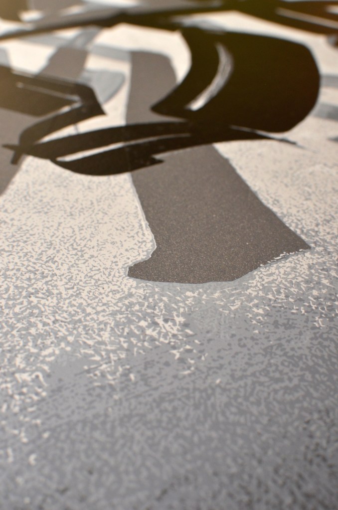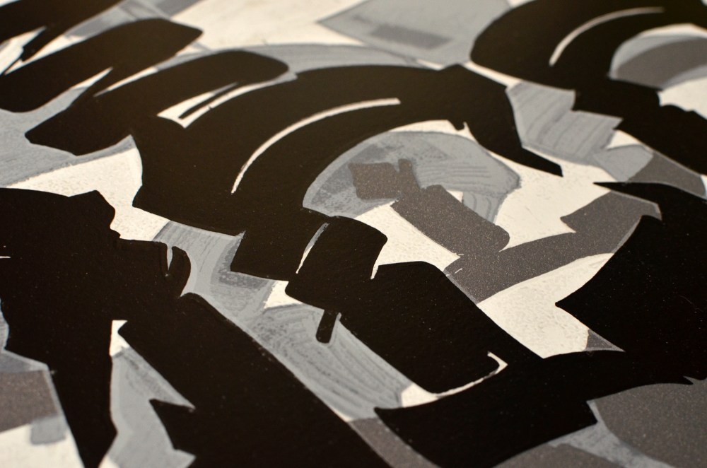 A few months ago I was asked to help out on the separations for the production of Chaz Bojorquez’s “Tres Placas” serigraph. All of the letterforms seps were done in Illustrator.